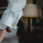 F. portait à ravir le noeud papillon Jaune Soleil à pois et ses boutons de manchette assortis, pour le costume, son choix s’est arrêté sur un costume De Fursac d’une très jolie couleur, à la frontière entre le bleu et le gris.