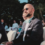 Les témoins, quant à eux, avaient opté pour le noeud papillon vert mint à pois, en harmonie parfaite avec la lumière portugaise. Les deux témoins avaient une chemise blanche avec petit col qui met parfaitement en valeur les noeuds.