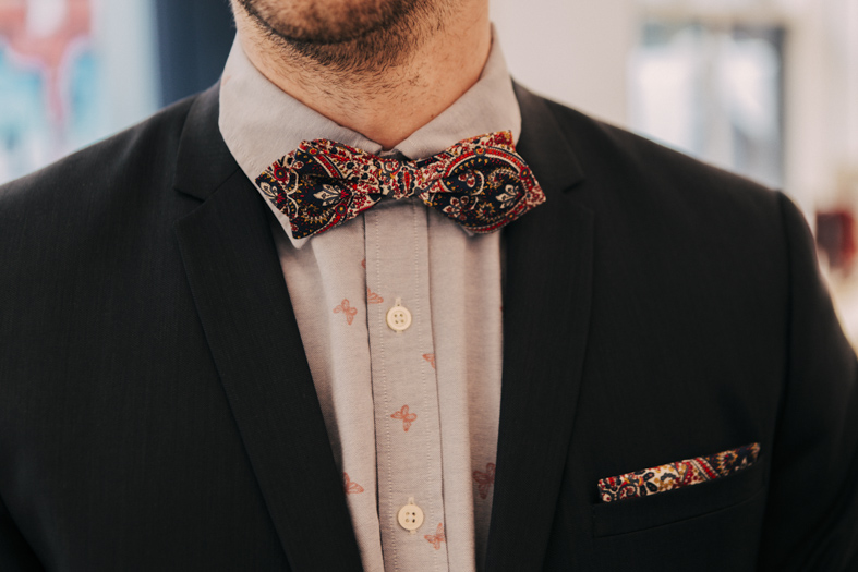 Tout est une question d’équilibre, il est pertinent de choisir la forme de son nœud papillon selon sa morphologie. Si vous êtes plutôt large d’épaules, avec une mâchoire bien marquée, on misera sur un nœud papillon épais. A l’inverse, il sera plus mince si vous possédez des traits fins et que vous avez la silhouette plutôt élancée.
