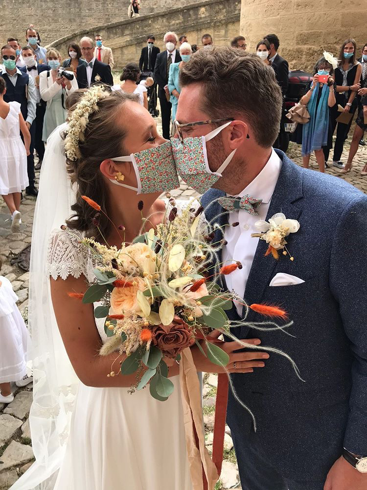 A la mairie et à l’église, le nombre d’invités est donc déterminé selon la taille de la salle des mariages et la possibilité de respecter les mesures de distanciation sociale. Sur le parvis, les invités doivent sortir par groupes successifs de dix personnes, car c’est une voie publique, donc pas de photo de groupe.