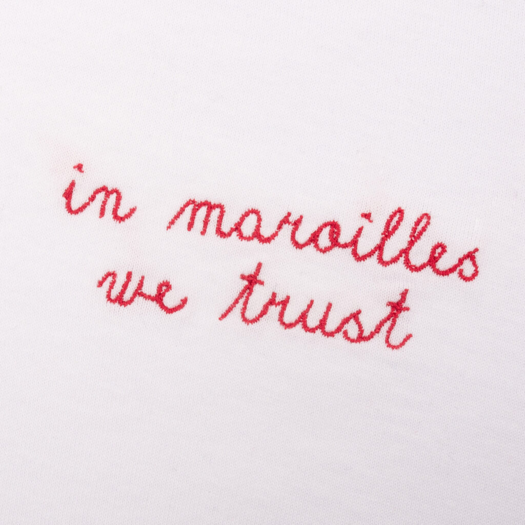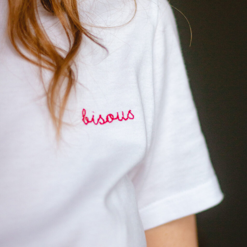 Vous pouvez choisir votre tee-shirt soit en bleu marine avec broderie moutarde, soit en blanc avec broderie en rouge. Il est designé pour être porté par lui comme par elle ! Les broderies sont réalisées dans notre atelier lillois par Victoria et David !