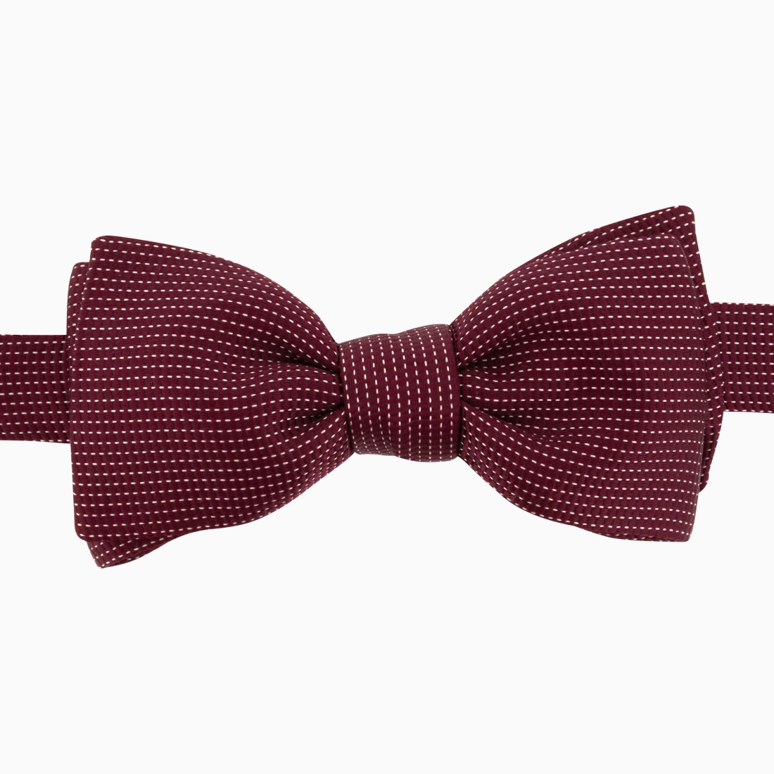 The Fiorenza burgundy bow tie is crafted from burgundy silk. It is distinguished by subtle polka dots that add an element of elegance and detail to the fabric. This feature gives it a refined yet understated look. Perfect for formal occasions or to add a distinguished touch to an outfit.