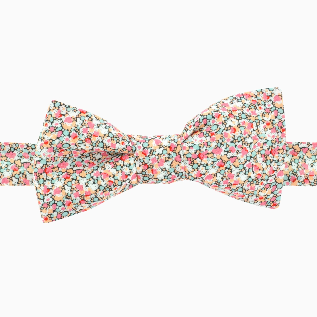 This bowtie is an accessory that exudes freshness and vivacity. Crafted from a fabric featuring shades of peony and seafoam green, this bowtie offers a captivating and dynamic pattern. The vibrant shades of pink harmoniously blend with seafoam green, creating a visually striking contrast. This accessory is ideal for adding a touch of color and vitality to your outfit, whether it's for a special occasion or your everyday style.