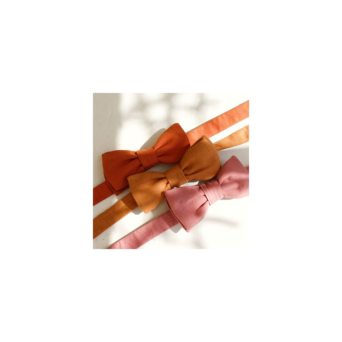 This bow tie, in a delicate shade of powder pink, embodies softness and refinement. Its seersucker fabric is perfect for a special occasion or a casual outing, this pink bow tie is a timeless choice that will add a touch of charm and sophistication.