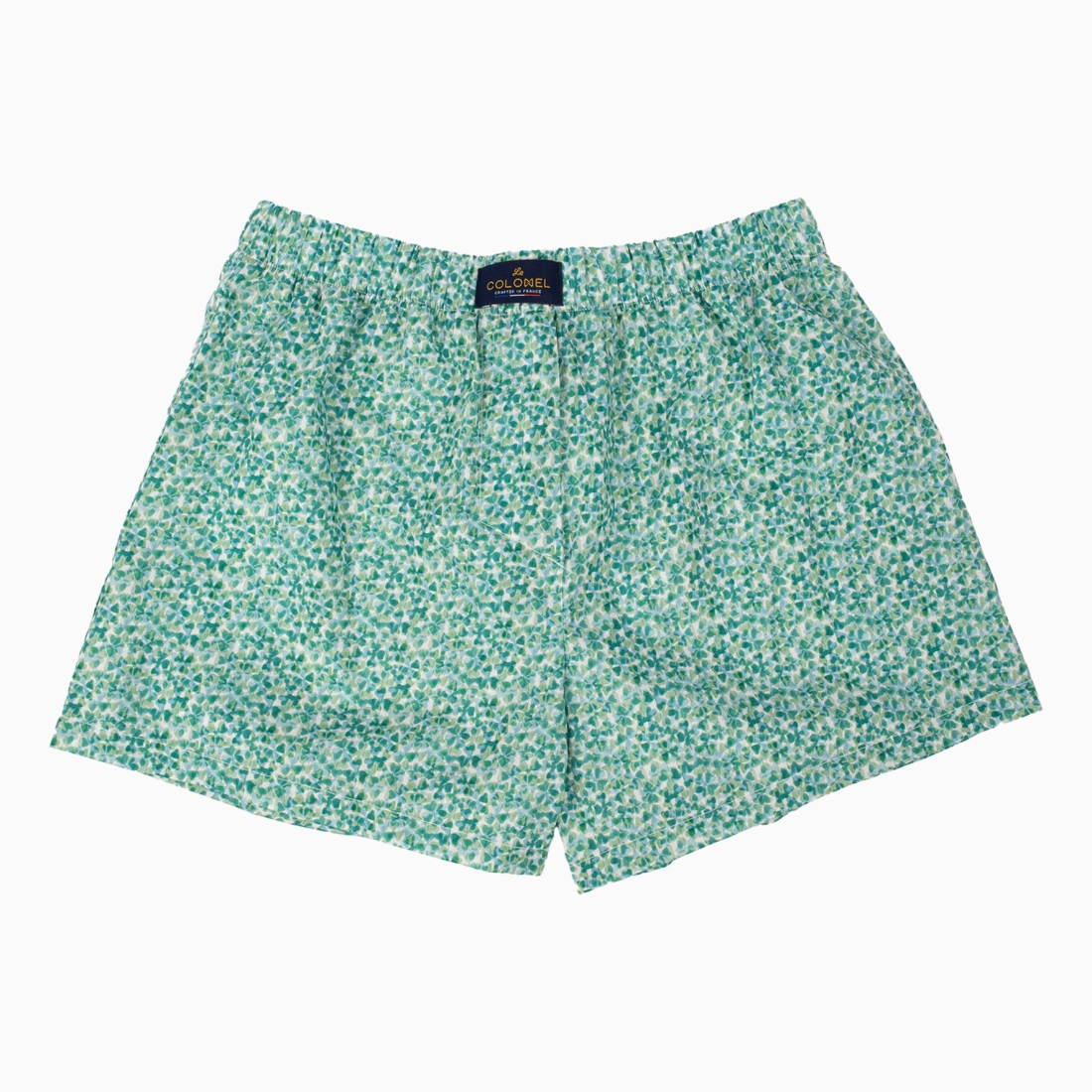 Adorned with a charming pattern of green clovers, symbols of luck and freshness, these boxers feature varying shades of green that create a lively and natural effect, reminiscent of a lush clover field. The timeless design and soothing color make these boxers a perfect choice for those who value comfort and classic style.