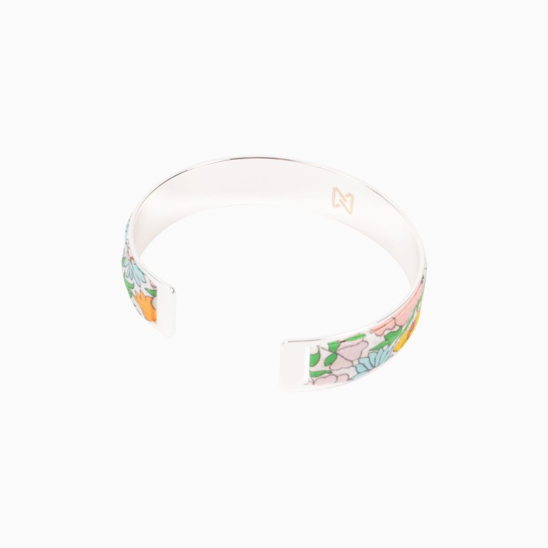 Add a touch of freshness and elegance to your wrist with this silver-plated brass bracelet, adorned with a delicate Liberty Poppy Limonade silk ribbon. Its luminous floral motif in sparkling shades will brighten up your outfit with finesse. Lightweight and adjustable, it's a natural choice for everyday wear and special occasions.