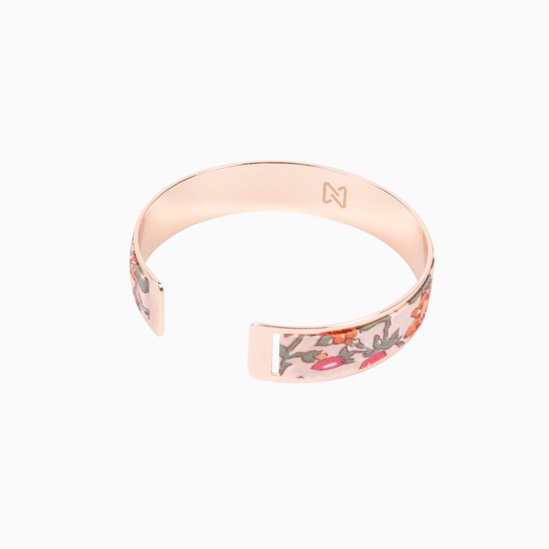 This chic cuff bracelet showcases the beauty of rose gold brass complemented by a strip of pink Liberty Babingdon. The bracelet's minimalist design is perfect for adding a touch of understated elegance. The warm hue of the brass and the Liberty pattern form an elegant duo that's sure to enhance any outfit.
