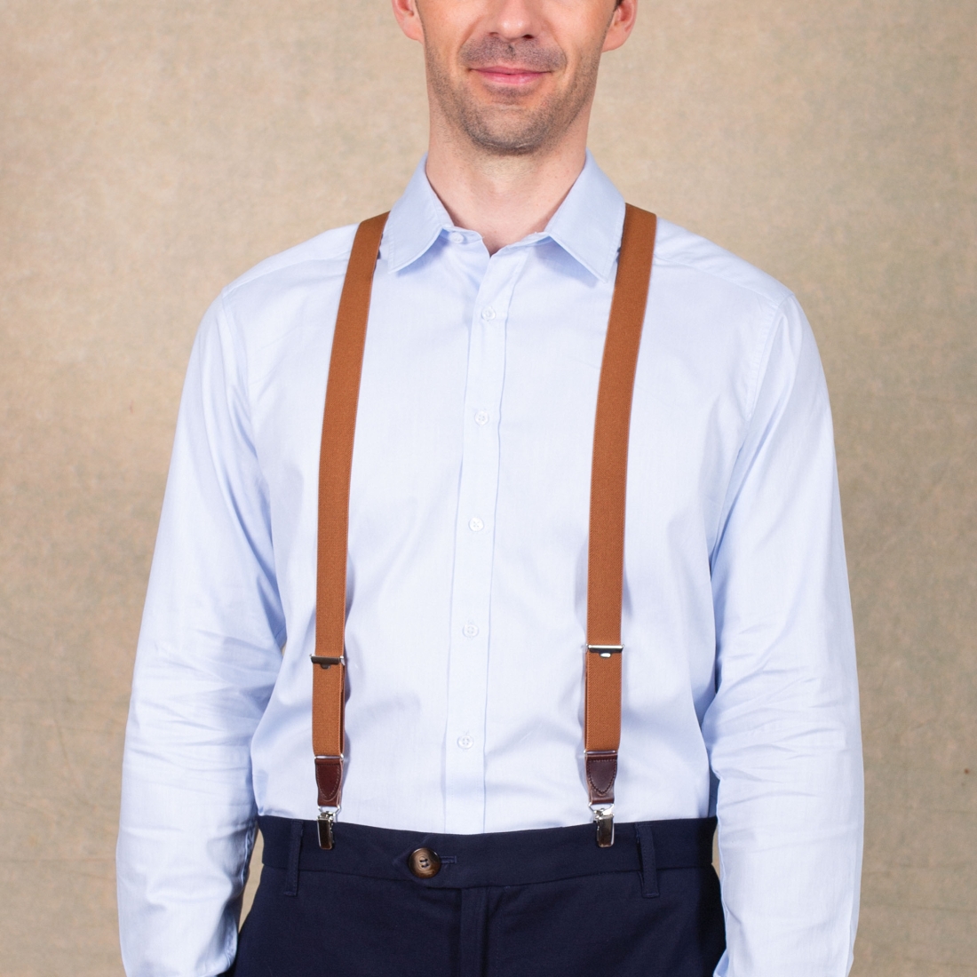 The chestnut-colored slim braces with chocolate leather details are a distinctive and refined accessory, perfect for adding a touch of elegance to any wardrobe. Their chestnut hue, warm and welcoming, pairs perfectly with the chocolate leather accents, creating an attractive visual harmony. These braces combine functionality and aesthetics, offering secure support without sacrificing style. The slimness of the suspenders ensures a sophisticated and modern look, while the chocolate leather details add a luxurious aspect and increased durability to the connection points. This blend of colors and materials makes them an ideal choice for those seeking a practical and aesthetically pleasing accessory, perfect for complementing both formal and more casual outfits.
