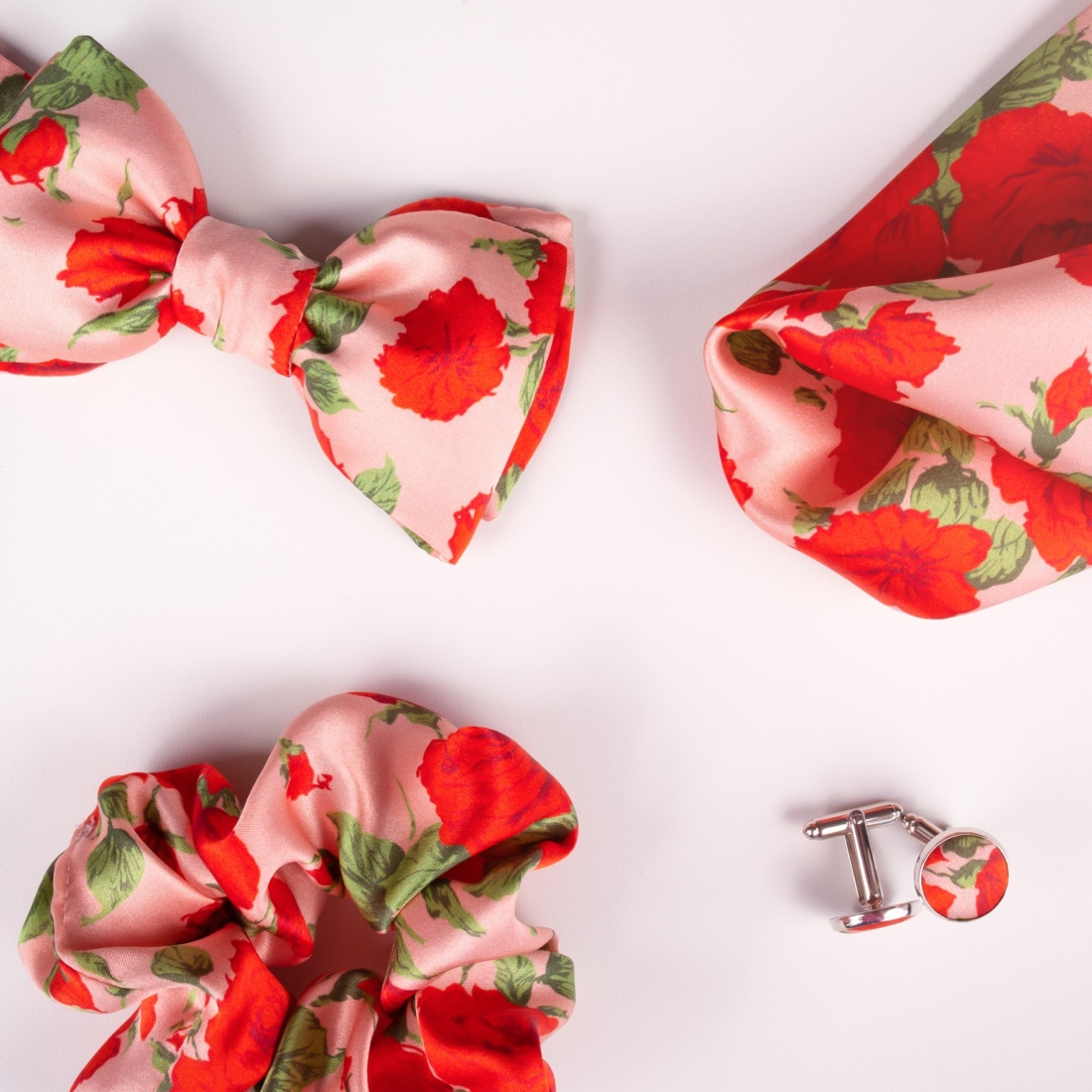 The Liberty Carline Silk cufflinks, with their pink background and red floral patterns, embody elegance and boldness. Perfect for various occasions, they combine classicism and modernity. Their floral pattern, both subtle and captivating, adds a touch of color and sophistication. These accessories are ideal for those looking to express their personality with refinement and distinction, making them a distinguished choice to elevate any outfit.