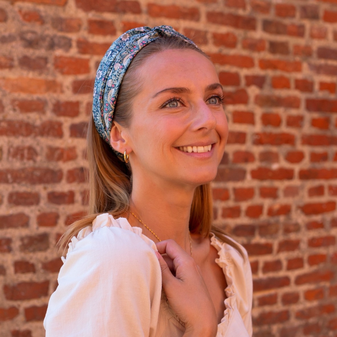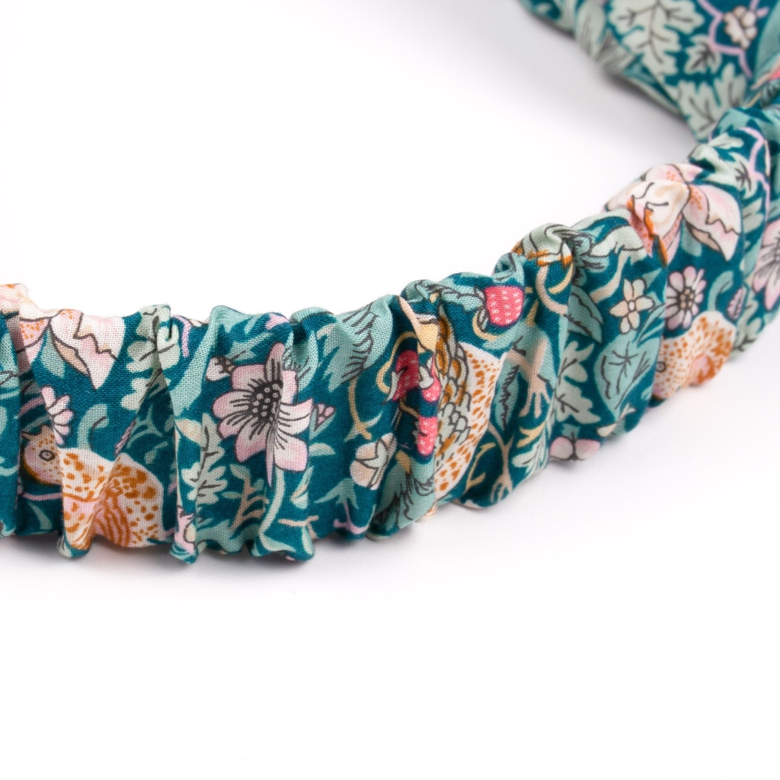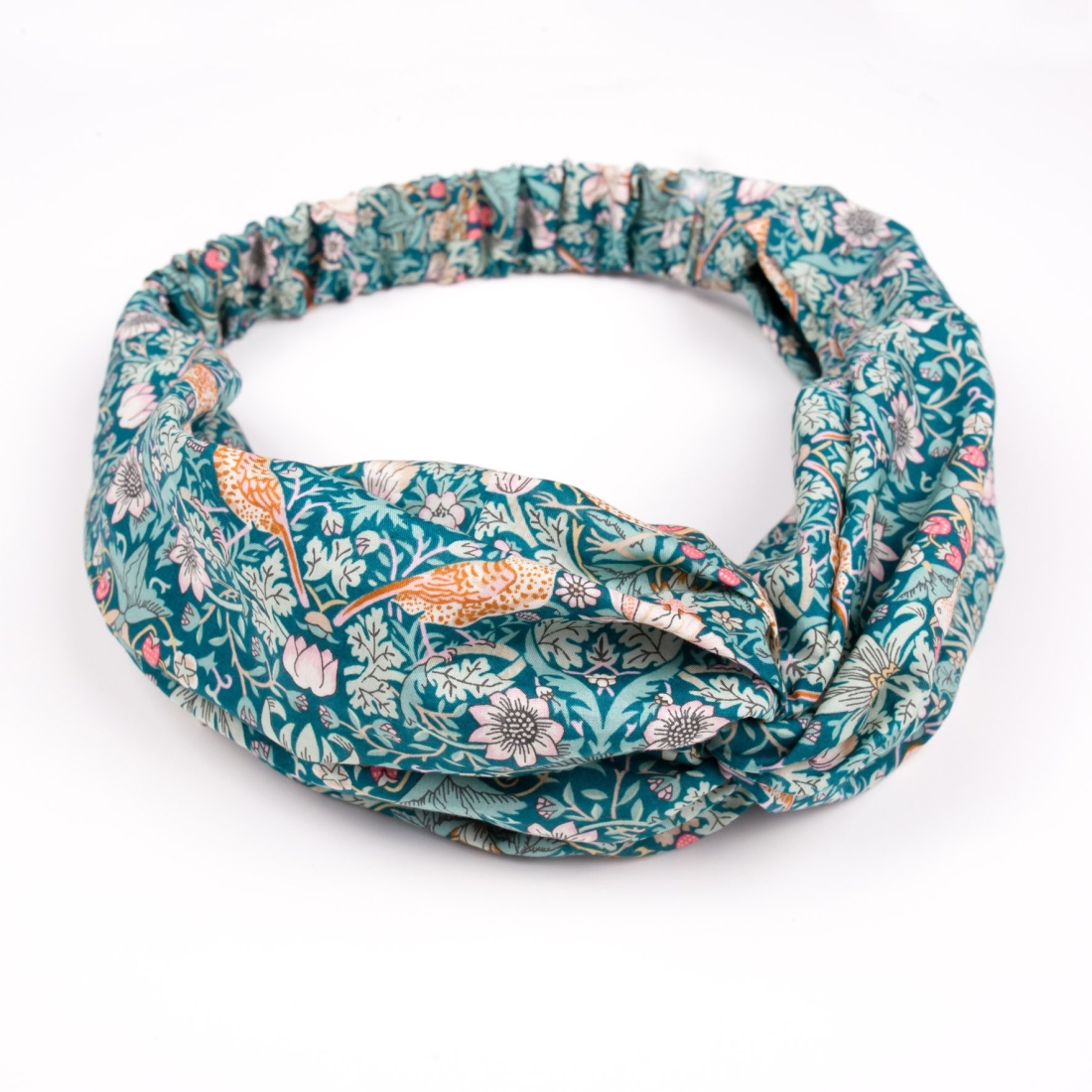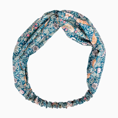 This elegant headband features an enchanting pattern with birds and strawberries, incorporated into a lush floral garden. The vibrant colors against a blue background evoke summer days and add a touch of whimsy to your hairstyle. The perfect accessory for those looking to bring a note of cheerfulness and uniqueness to their outfit while still maintaining a chic and feminine look.