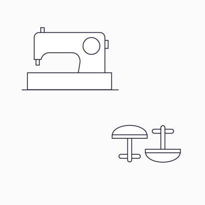 We work with cotton fabrics, such as poplin and Liberty. We are unable to sew upholstery or overly thick fabrics, as well as silk. Engraving services are not available.