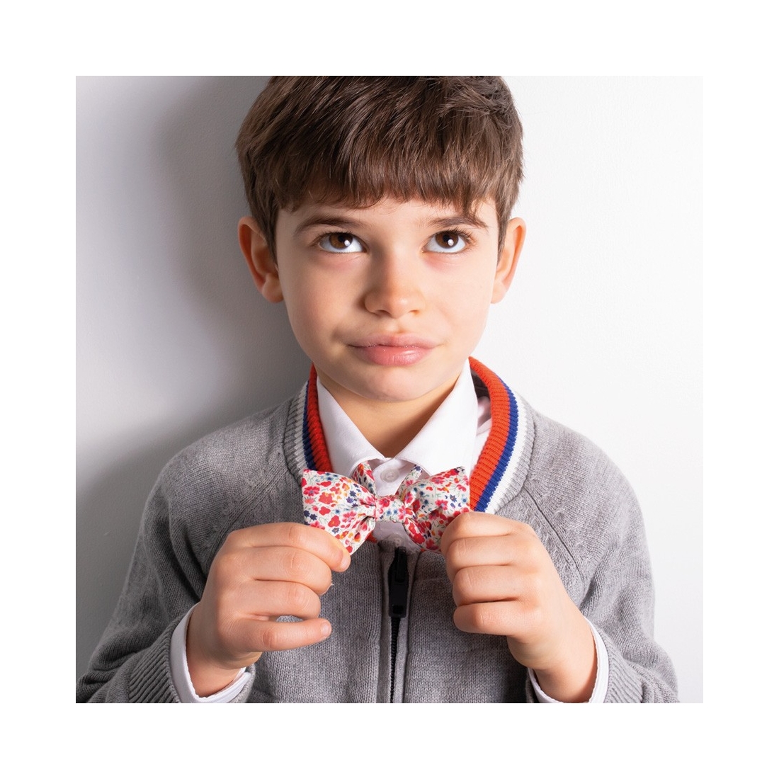 Add a touch of freshness and liveliness to your child's outfit with this beautiful Liberty Phoebe Coral bow tie from Le Colonel. Made in France, this bow tie features a vibrant floral pattern with flowers in shades of coral, blue, yellow, and red on a white background. This elegant and colorful design is perfect for special occasions or to bring a cheerful note to an everyday outfit. An ideal accessory for children who want to stand out with style and originality.