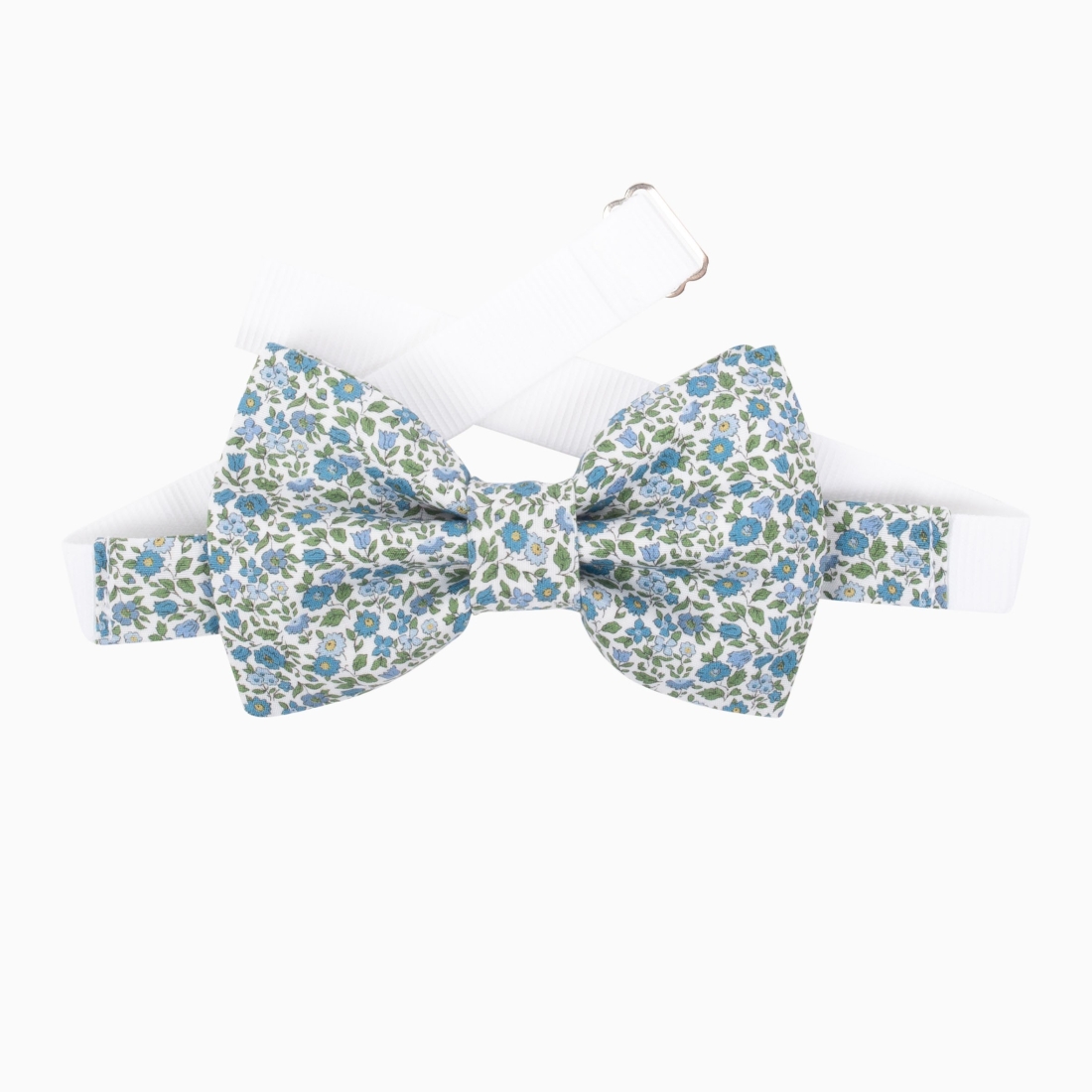 Add a touch of freshness and charm to your child's outfit with this beautiful Liberty Hampstead Gardens bow tie from Le Colonel. Made in France, this bow tie features a delicate floral pattern with flowers in shades of blue, green, and pastel yellow. This elegant and refined design is perfect for special occasions or to bring a touch of cheerfulness to an everyday outfit. An ideal accessory for children who want to stand out with style and elegance.
