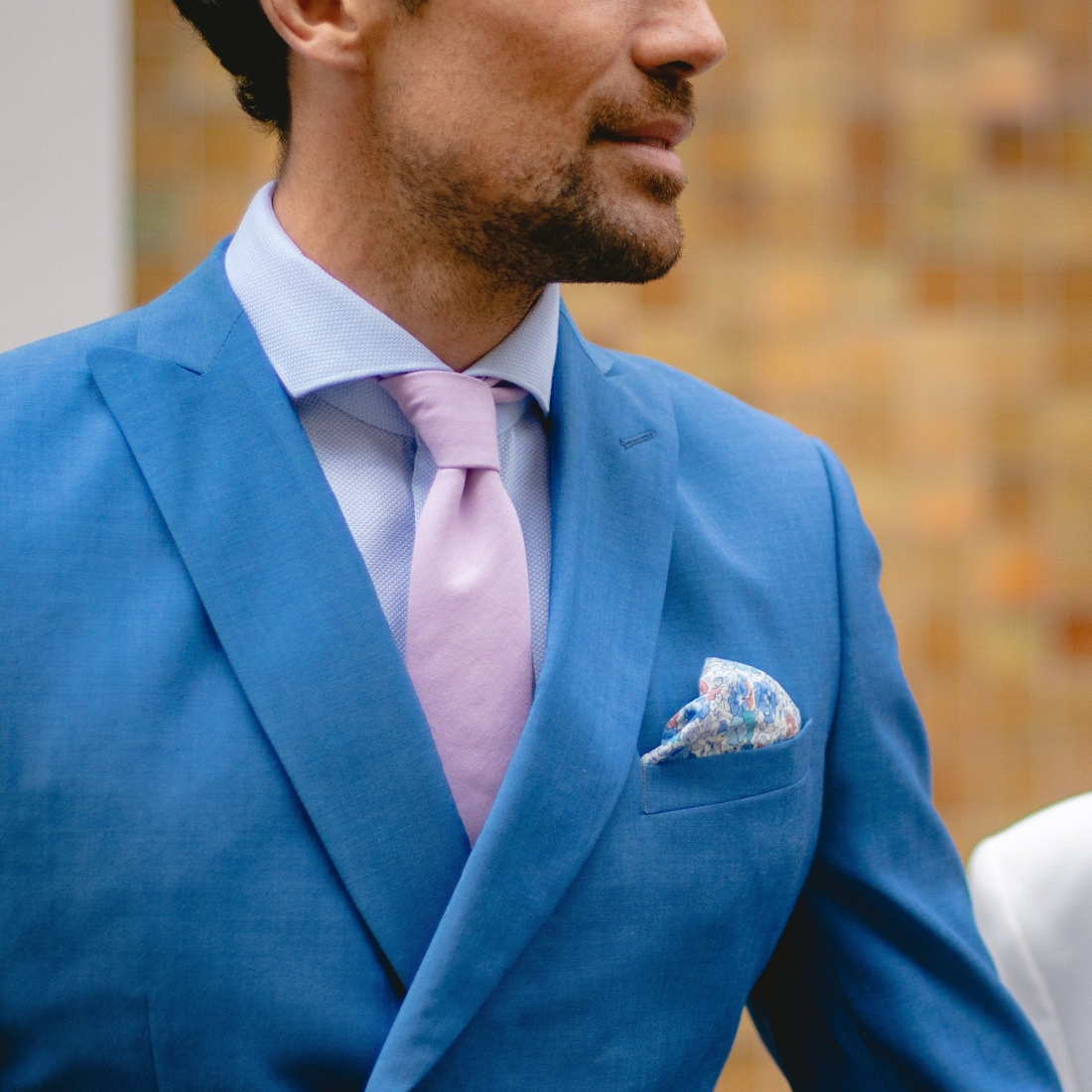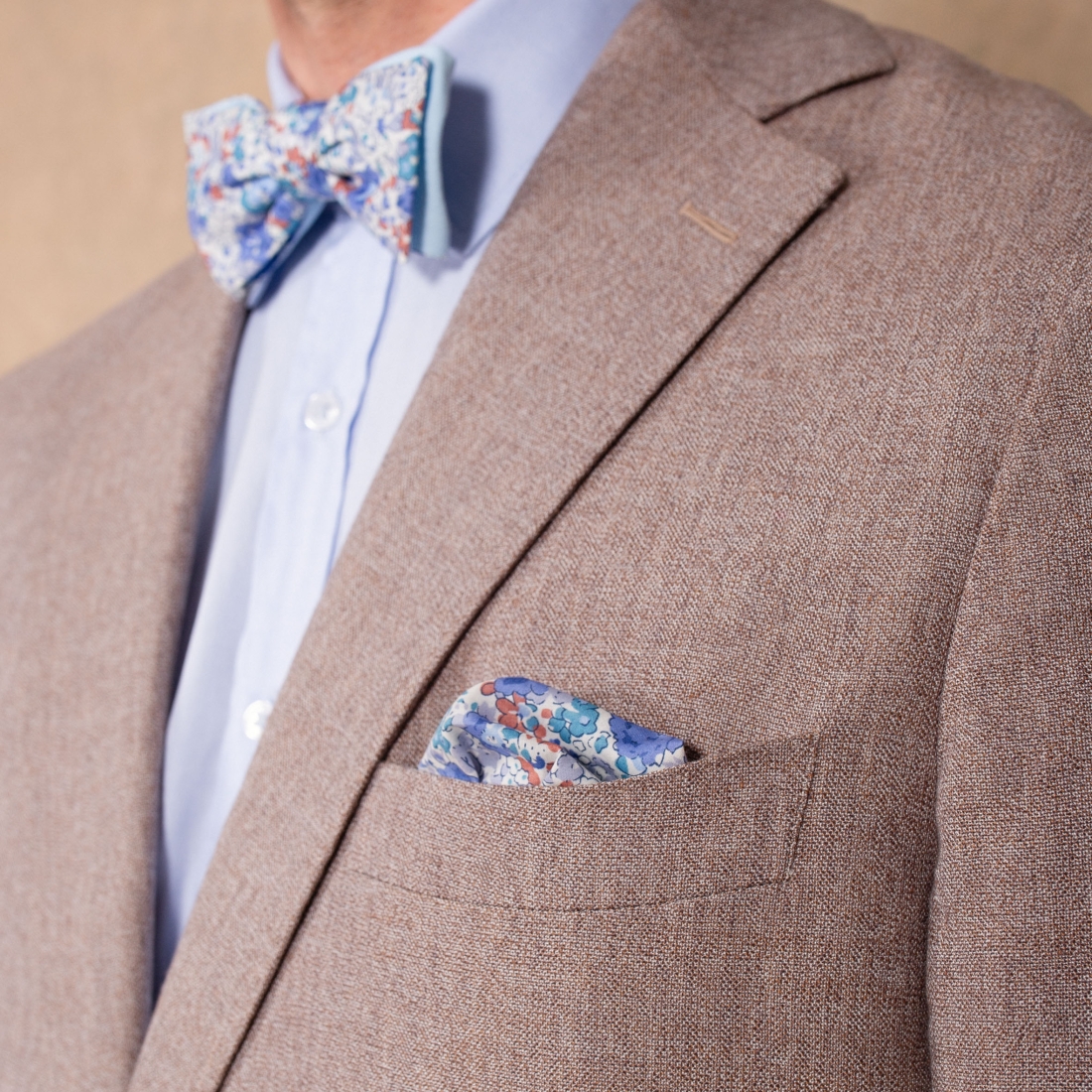 The pocket square features the Liberty Claire Aude pattern in shades of blue. Its design stands out with a watercolor effect, giving softness and fluidity to the pattern. The colors, seemingly blending harmoniously, evoke a hand-painted quality. Shades of blue, mixed with hints of orange and turquoise, infuse a refreshing and calming ambiance. The watercolor effect adds a romantic and delicate touch while remaining modern. This pocket square is the perfect accessory for those looking to bring an artistic and elegant note to their outfit.