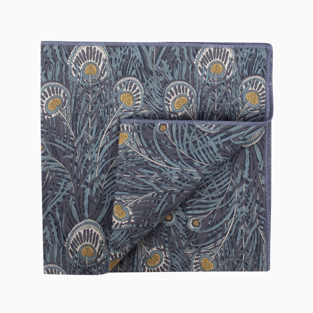 Elevate your suit with our Hera Queen pocket square. Featuring peacock feather patterns on a blue-gray background, it offers an elegant and captivating contrast. Subtle yet distinctive, this pocket square is the ideal accessory to add a refined pop of color to your formal attire, whether for a ceremony or a stylish evening.