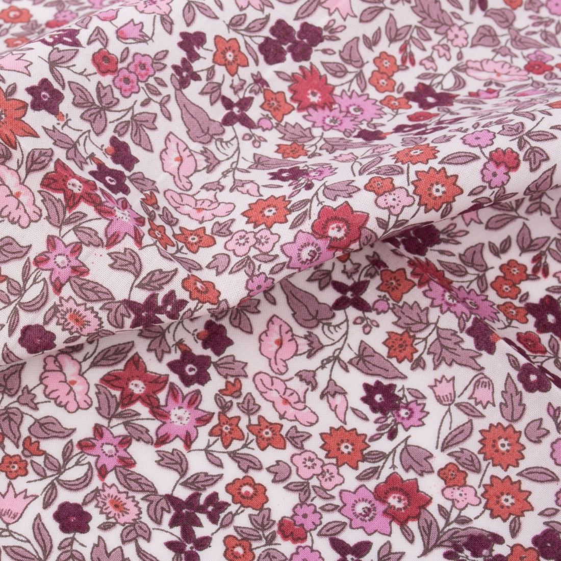 This scrunchie features a delicate floral pattern in shades of pink and burgundy, with touches of beige for the foliage. The small flowers and leaves are scattered harmoniously throughout the fabric, creating a design that is both rustic and feminine. The cotton material, soft and breathable, makes this accessory comfortable for everyday wear while adding a touch of romantic softness to any hairstyle. It's the perfect addition for those looking to bring a subtle and elegant floral touch to their look.