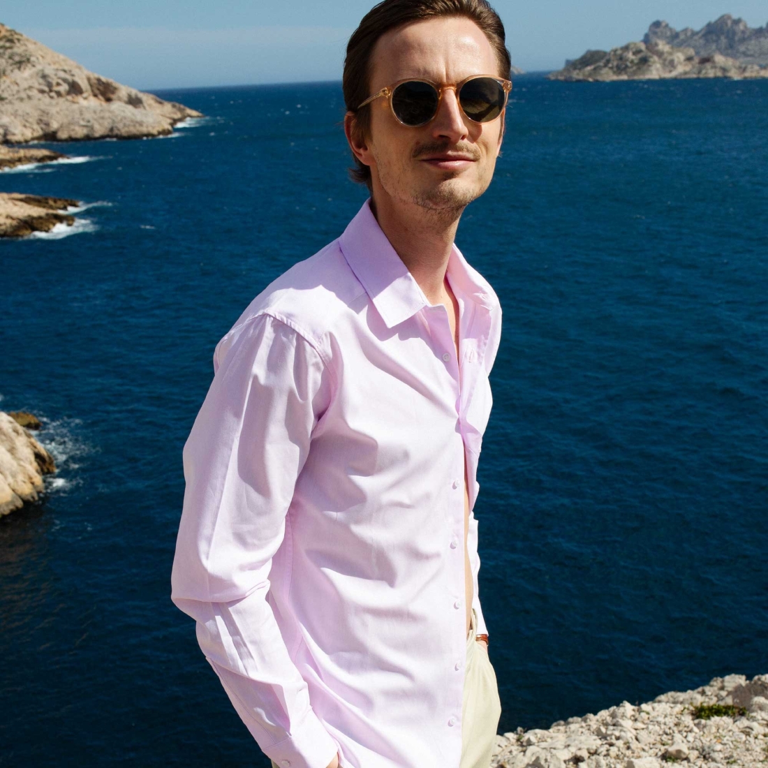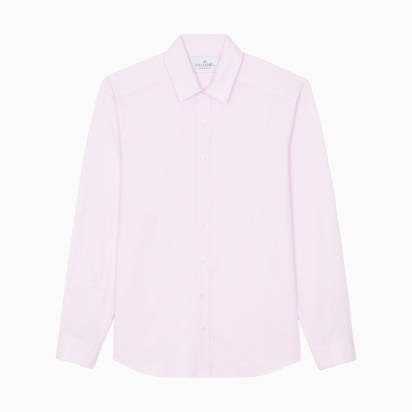 This pale pink shirt, with its slim fit, is made in France, highlighting artisanal craftsmanship and quality craftsmanship. Its soft color adds a touch of delicacy and modernity to the ensemble, perfect for formal occasions or to elevate a classic office outfit. The selected fabric promises optimal comfort throughout the day, while offering appreciable durability. It is ideally suited for the modern man who wishes to incorporate a touch of subtle and trendy color into his wardrobe, without overshadowing the natural elegance of a well-cut shirt.