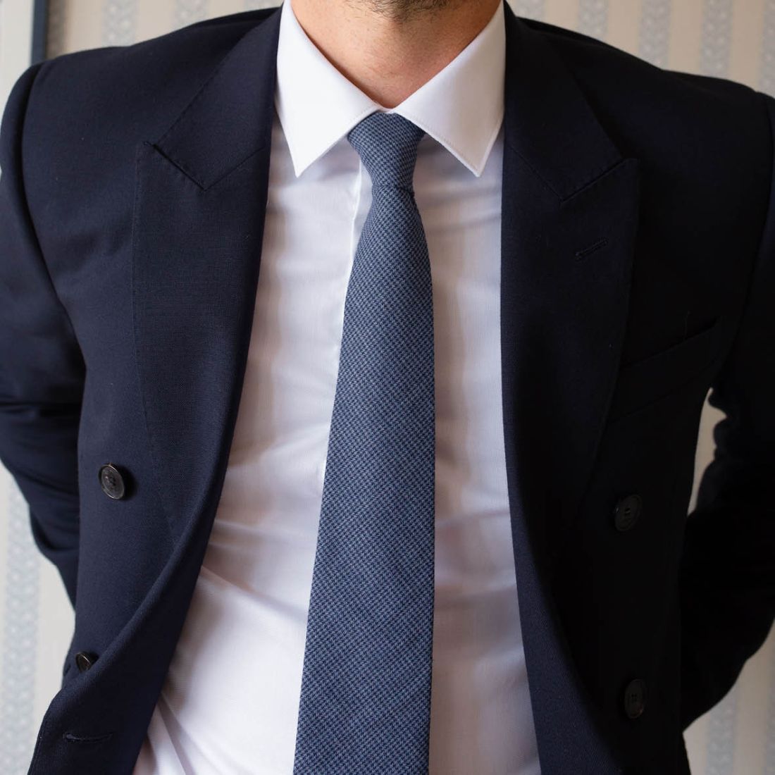 The Blue Houndstooth Tie stands out with its classic and timeless pattern. Featuring an elegant houndstooth design on a deep blue background, it adds a touch of sophistication to any outfit. This tie is perfect for those seeking a blend of modernity and tradition.