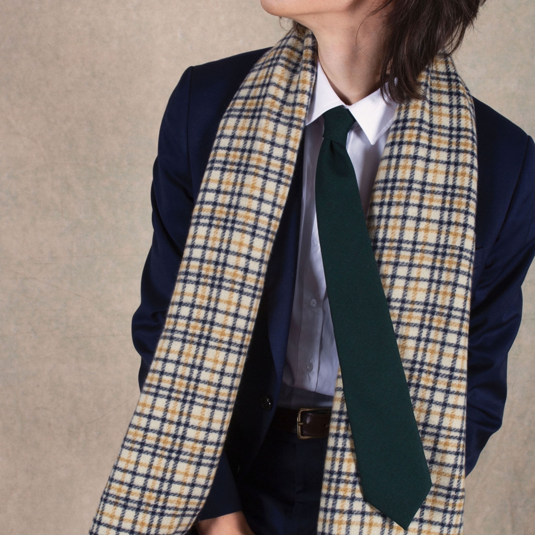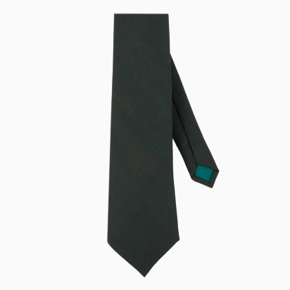 This tie is crafted from high-quality Italian wool, known for its fineness and durability. It features a shade of cypress green, a deep and sophisticated green reminiscent of dense forests. Its woolen texture adds dimension, bringing depth and character to its design. The classic cut of this tie makes it ideal for formal and professional outfits.