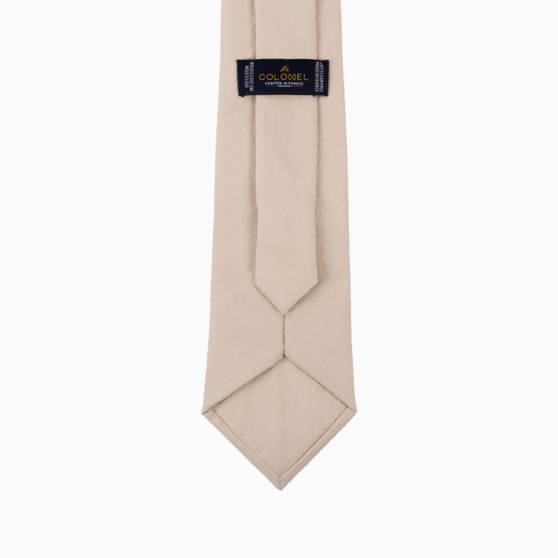 A classic tie crafted from seersucker fabric in a Dune shade. Seersucker is a fabric with a slightly puckered texture and a distinctive striped pattern. The Dune hue evokes a sandy color, making this tie versatile for various occasions. It can be worn at formal or casual events, offering a touch of elegance and simplicity.