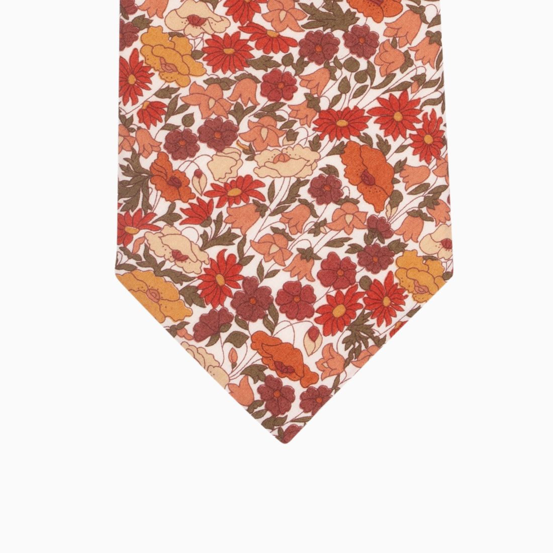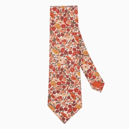 Add a touch of refinement and originality to your outfit with this tie made from Liberty Poppy squirrel fabric. Its delicate pattern harmoniously blends warm, autumnal hues, offering a subtle combination of elegance and character. Perfect for adding a touch of distinction to a suit, it can be folded to suit any style, from the classic to the most daring.