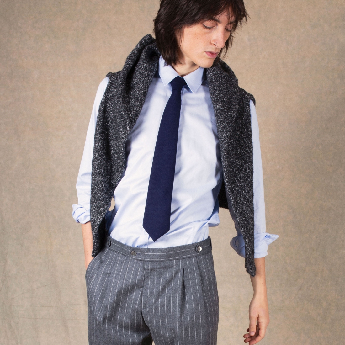 The midnight blue wool tie is a timeless piece of elegance. Its deep shade evokes the serenity of a nighttime sky, adding a touch of understated sophistication to any outfit. Crafted from wool, it offers a rich and pleasant texture to the touch. Its clean style and subdued color make it a must-have in the wardrobe of the modern man who cares about his appearance.