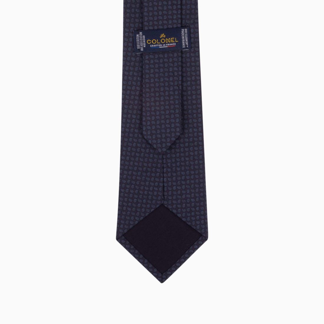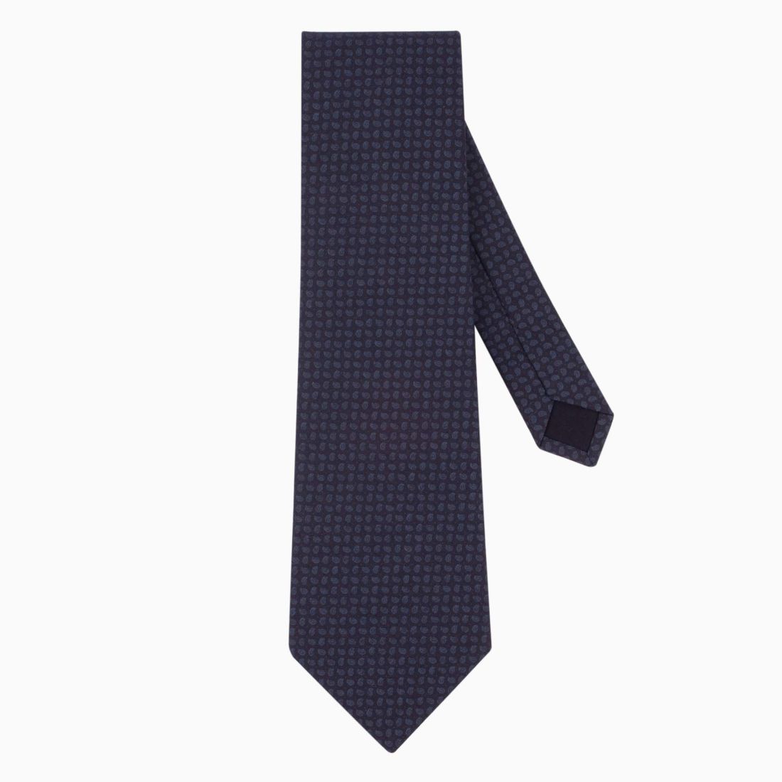 This tie features an elegant dark blue shade, adorned with delicate circular motifs reminiscent of daisies. The lighter blue motifs create a subtle contrast, adding depth and character to the overall design. Perfect for adding a touch of understated sophistication to an outfit, this tie combines modernity and tradition beautifully.