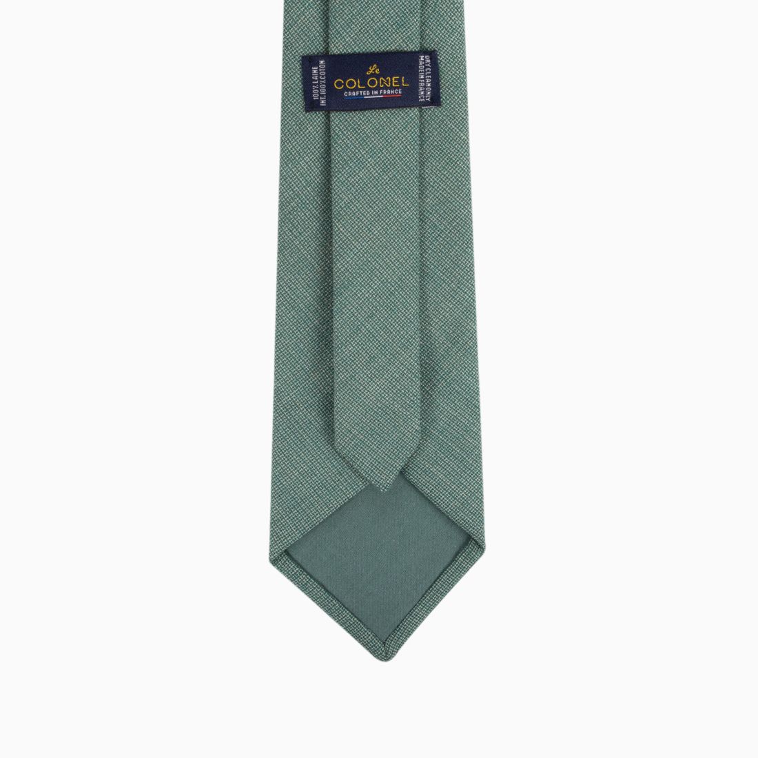 The Origano green Italian wool tie stands out with a soft and unique green shade, a true botanical and aromatic universe. Its Hopsack weave reveals a characterful natté relief, offering a textured and matte appearance that modernizes the accessory. Thanks to its careful craftsmanship, it features a structured drape and a supple hand for a perfectly shaped tie knot. It is the ideal piece to bring a touch of freshness to your suit.