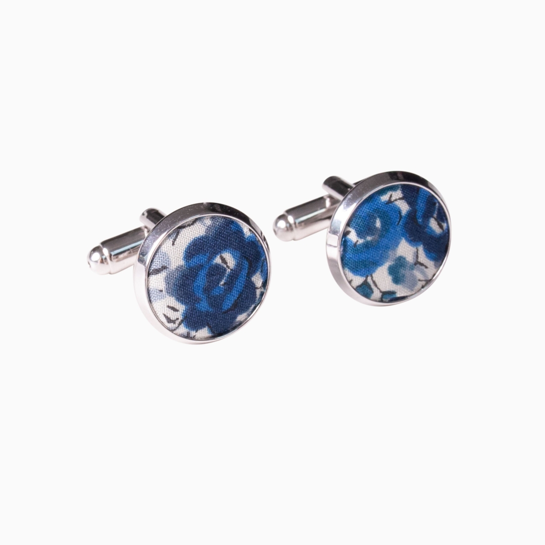 Ces boutons de manchette de la collection Liberty Emma se distinguent par leur bleu intense et leur motif floral détaillé. Ils ajoutent une touche de sophistication et de couleur à une tenue classique, idéals pour un gentleman souhaitant apporter une pointe de fantaisie discrète à son costume. Le design intemporel du tissu Liberty, associé à la teinte bleue profonde, en fait des accessoires distingués pour toute occasion formelle ou cérémonie.