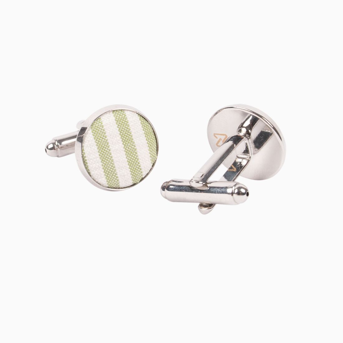 Ajoutez une touche de fraîcheur et d'élégance à votre tenue avec ces boutons de manchette en seersucker à rayures pistache. Ce tissu léger et texturé, apprécié pour son allure raffinée et estivale, se distingue par ses fines rayures vert tendre sur fond clair. Idéals pour une tenue formelle ou décontractée, ces boutons de manchette apporteront une note distinguée et originale à vos poignets.