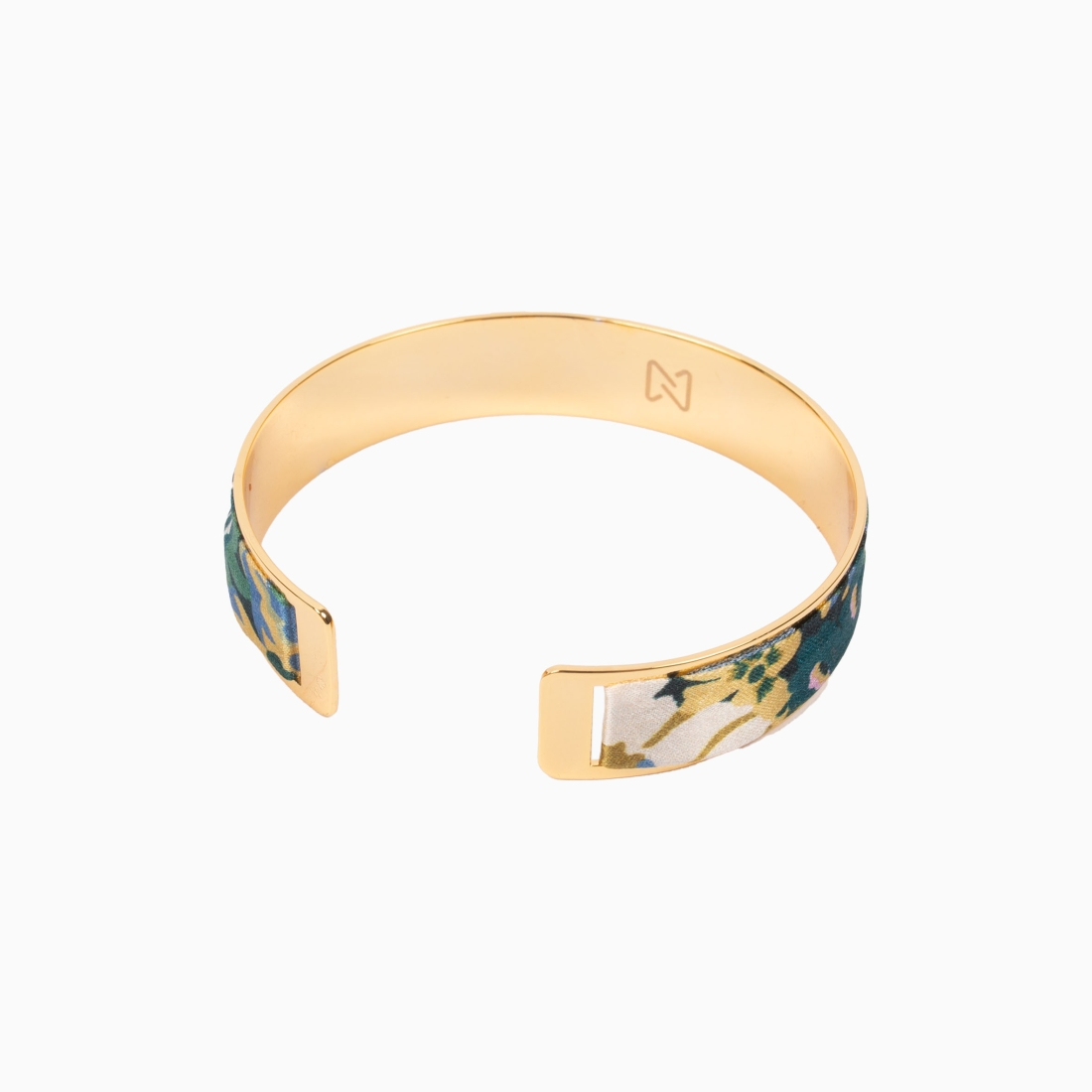 Ce bracelet délicat présente un ruban en soie Liberty Thorpeness vert, où se dessine un paysage floral envoûtant. Le vert sauge y est omniprésent, apportant une touche de nature à votre poignet, sublimée par l'éclat discret du laiton argenté.