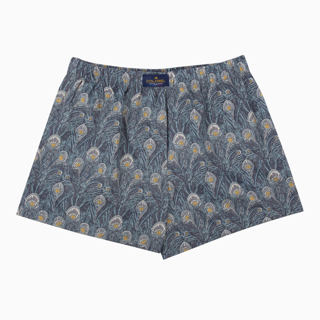 Offrez-vous une touche de luxe et d'originalité avec notre caleçon Queen Héra. Inspiré par la majesté des plumes de paon, ce caleçon en tissu doux et léger présente un motif élégant de plumes sur un fond bleu gris. Alliant confort et style, ce caleçon unique est parfait pour ceux qui souhaitent se sentir sophistiqués jusque dans les moindres détails de leur garde-robe. Un essentiel élégant et raffiné, pour un confort quotidien avec une touche royale.