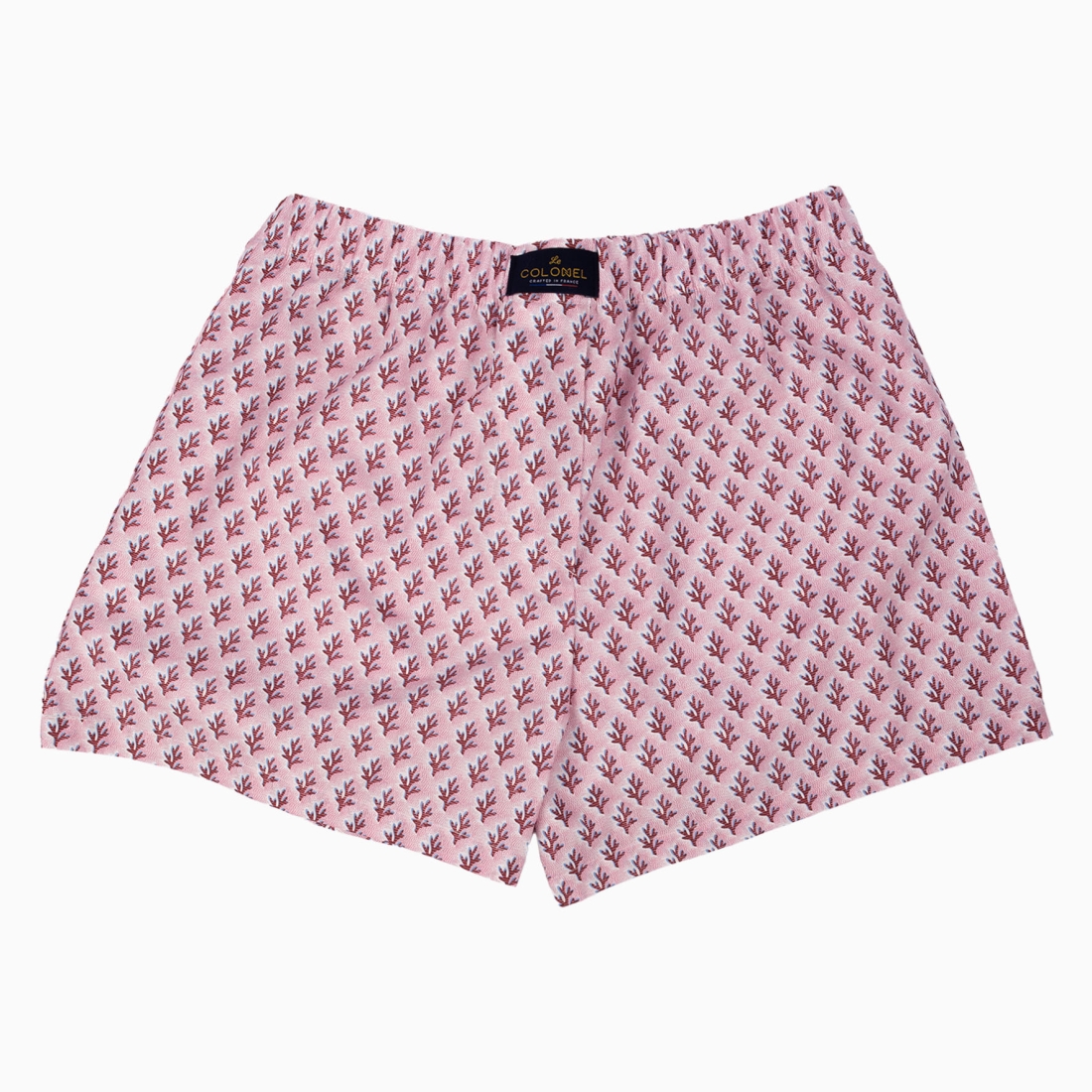 Cet élégant caleçon en tissu Liberty présente le motif Reef Haze, un délicat agencement de coraux colorés sur un fond rose pâle. Le motif évoque les merveilles d'un récif corallien sous un voile brumeux, offrant une esthétique à la fois sophistiquée et ludique. Idéal pour apporter une touche de fantaisie marine à votre tenue décontractée ou comme vêtement de nuit confortable.