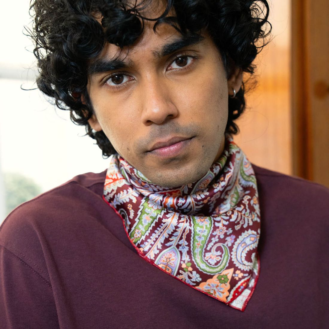 Ce carré de soie se porte avec assurance autour du cou, façon ascot ou noué librement, apportant une touche sophistiquée à une chemise ou un costume. Il peut également être enroulé autour du poignet pour une note plus contemporaine et audacieuse. Véritable symbole de raffinement, il s’intègre aussi bien à une tenue habillée qu’à un style plus casual, apportant une signature élégante à votre look.