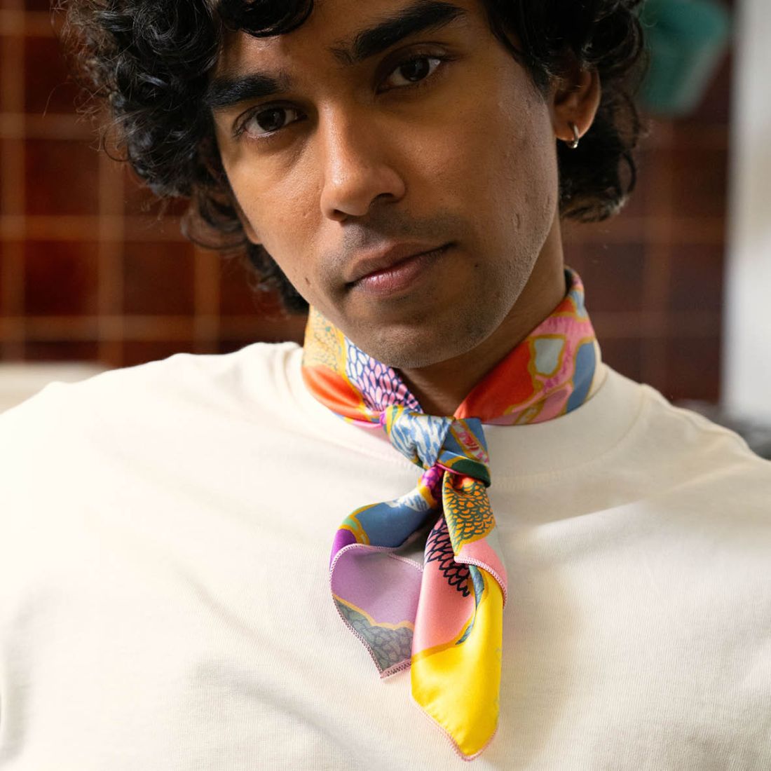 Noué autour du cou, il sublime une tenue avec élégance et caractère. Son toucher soyeux et sa fluidité en font un choix idéal pour ceux qui apprécient les belles matières et les détails soignés.