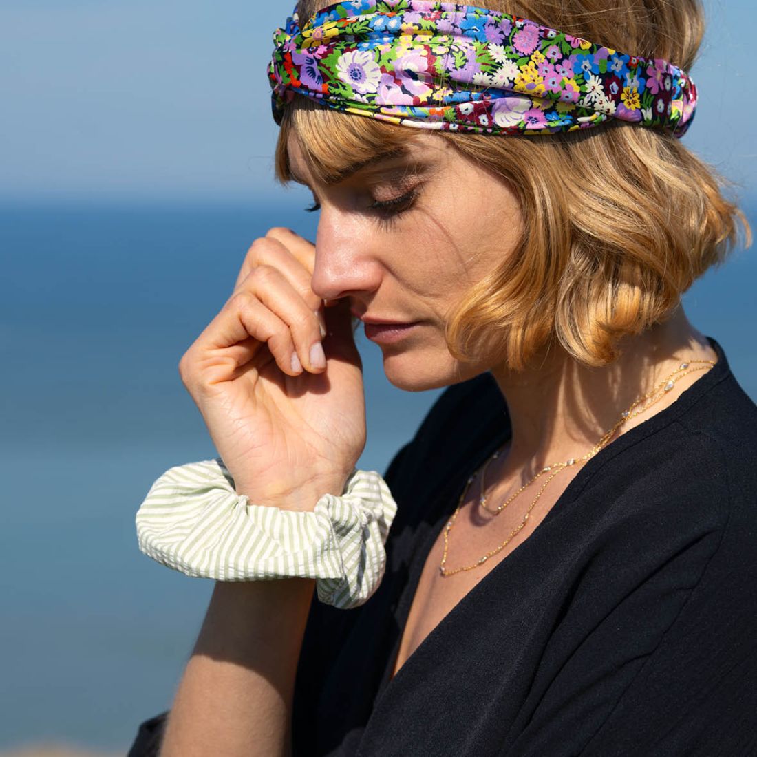 Apportez une touche de fraîcheur et de légèreté à votre coiffure avec le chouchou Seersucker Rayures Pistache. Son tissu texturé, à la fois doux et aérien, joue sur des nuances délicates de vert pour un look à la fois naturel et raffiné. Idéal pour sublimer vos coiffures avec élégance.