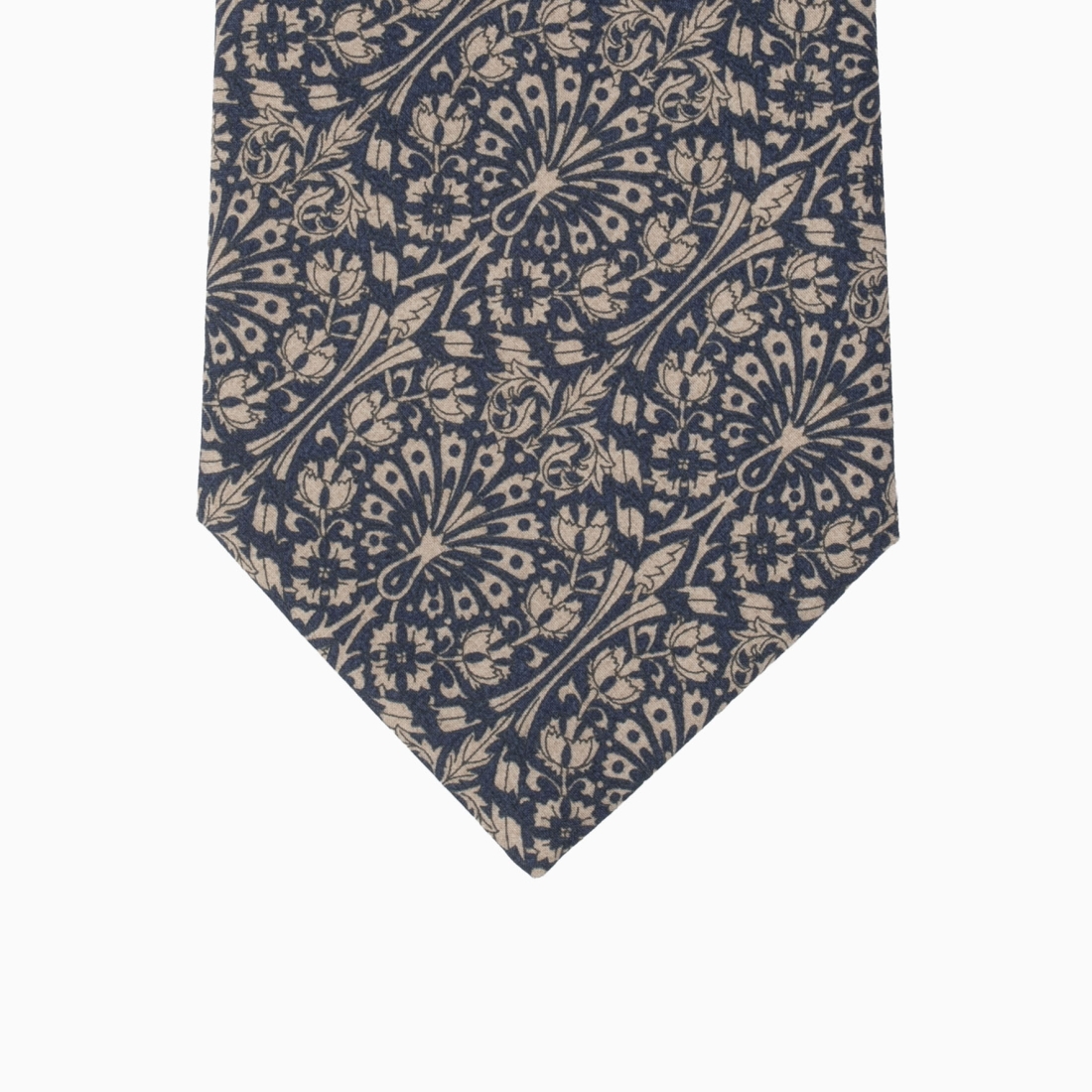 La cravate Liberty Peacock mêle un motif de plumes de paon dans une palette de bleus nocturnes et d'accents blancs. La complexité des motifs, inspirés de la majesté du paon est idéale pour ajouter une touche d'audace et d'originalité à une tenue classique ou pour rehausser un ensemble professionnel avec une pointe d'élégance artistique.