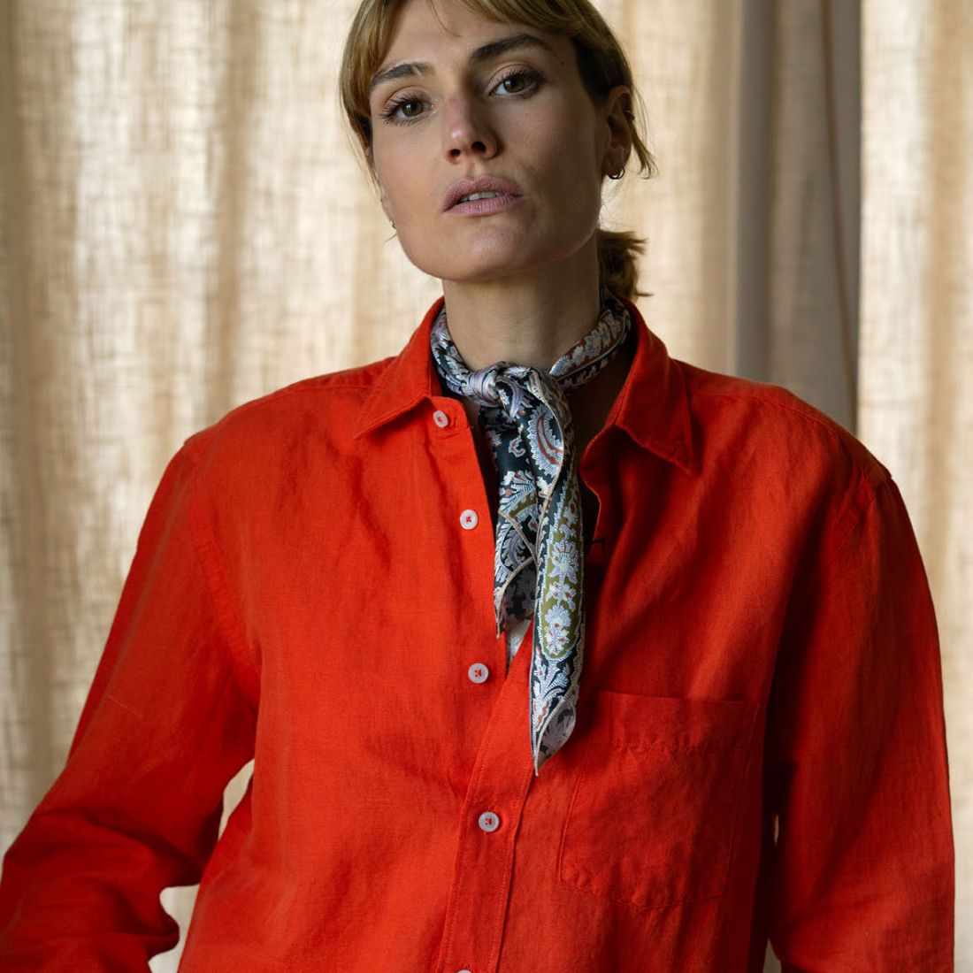 Ce carré de soie se porte de multiples façons selon vos envies : noué autour du cou pour une allure chic et distinguée, dans les cheveux pour un style bohème et romantique, ou encore enroulé autour du poignet pour une note originale. Vous pouvez aussi l’attacher à l’anse de votre sac pour une touche subtile d’élégance. Un accessoire incontournable qui rehaussera aussi bien une tenue habillée qu’un look plus décontracté.