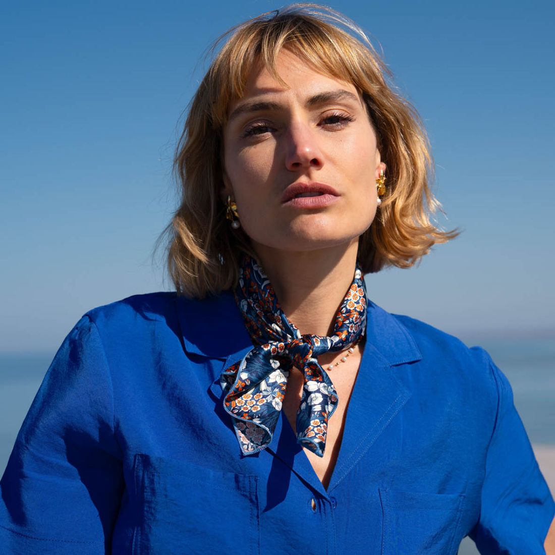 Intemporel, ce carré en soie se porte de multiples façons : noué autour du cou pour une touche chic et élégante, dans les cheveux pour un look bohème et romantique, ou encore attaché à l’anse de votre sac pour une note raffinée et tendance. Il se marie aussi bien avec une tenue habillée qu’avec un ensemble plus décontracté, apportant une touche de couleur et de personnalité à votre style.