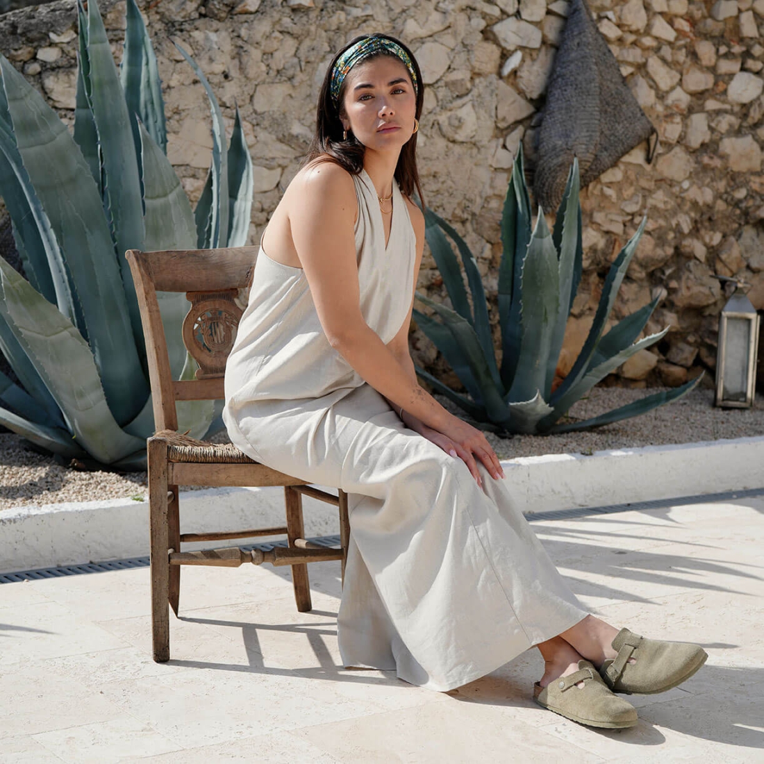 Un headband qui épouse la richesse des teintes du jardin Thorpeness, avec son vert sauge profond et ses éclats floraux multicolores. Il encadre le visage avec élégance et ajoute une touche de gaieté à vos coiffures quotidiennes.
