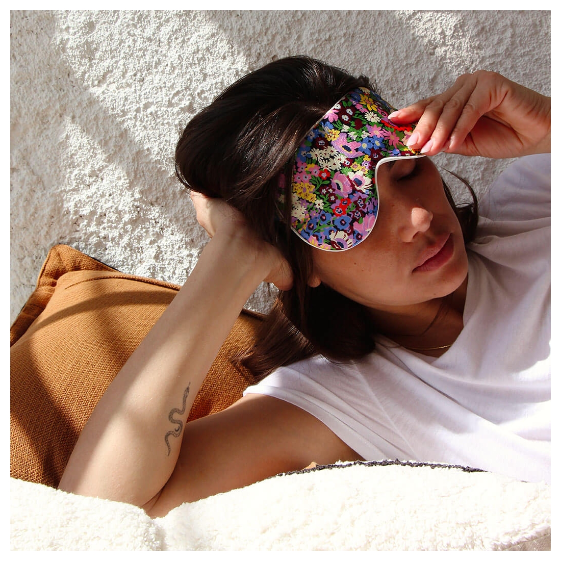 Conçu pour favoriser un sommeil réparateur, ce masque de nuit est en soie des deux côtés, offrant une sensation de luxe et de confort. La soie, connue pour ses propriétés hypoallergéniques et sa douceur, respecte la peau et aide à prévenir les rides et la perte d'hydratation pendant le sommeil. Le motif Liberty Thorpeness lilas est une véritable caresse visuelle qui invite au calme et à la détente.