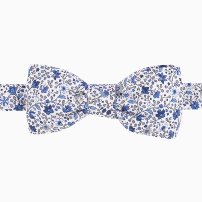 Ses petites fleurs bleues et grises, soigneusement disposées évoquent un jardin secret plein de charme. Dans un bleu outremer profond, ce nœud papillon incarne à la fois le raffinement classique et une touche de mystère. Ce nœud papillon Liberty Camille bleu outremer apporte une note d'originalité et d'élégance à votre tenue, que ce soit pour une occasion spéciale ou pour votre vie quotidienne.