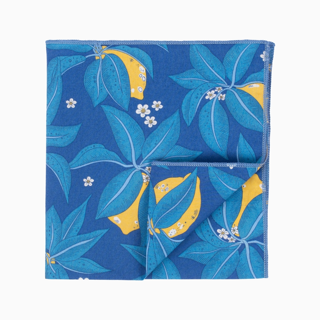 La pochette de costume Liberty Citron Majorelle vous transporte dans un jardin d'été méditerranéen. Les citrons jaunes éclatants se détachent sur le fond bleu, évoquant les couleurs vibrantes des paysages marocains. Les petites fleurs blanches parsemées entre les feuilles d’un vert vif ajoutent une délicatesse rafraîchissante à ce tableau. Cette pochette est l’accessoire idéal pour ceux qui cherchent à injecter une touche de fraîcheur et d’éclat dans leur garde-robe.