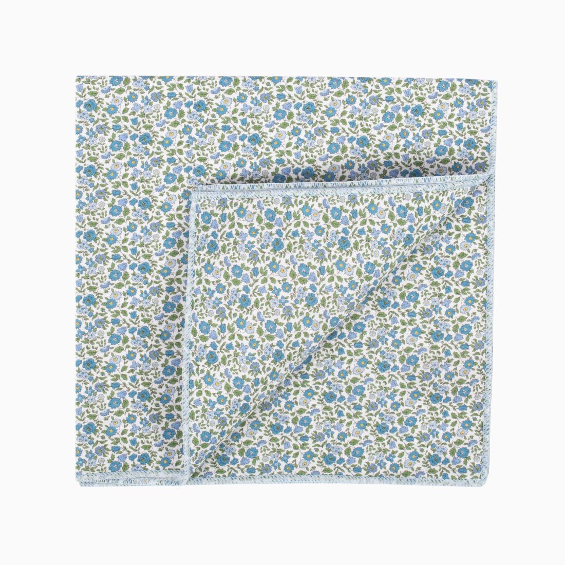 Cette pochette de costume présente un motif floral détaillé en nuances de bleu et vert sur fond blanc. La densité du motif évoque une mosaïque, avec une combinaison de couleurs évoquant la fraîcheur. Les teintes vives de bleu contrastent avec le vert subtil, le tout mis en valeur par le fond blanc lumineux. Idéale pour ajouter une touche élégante à une tenue.
