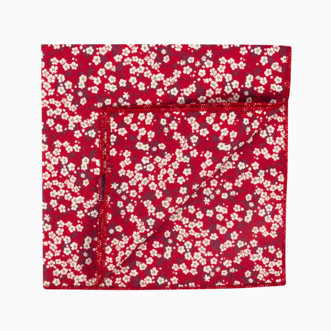 Cette pochette de costume présente un motif floral dense sur un fond rouge vif. Les petites fleurs blanches, avec des détails verts et sombres, créent un contraste séduisant. La couleur rouge évoque passion et énergie, tandis que les fleurs blanches apportent douceur et délicatesse. L'agencement audacieux des couleurs en fait un choix idéal pour des occasions festives où l'on souhaite se démarquer. Malgré son caractère dynamique, la finesse des motifs lui confère une élégance certaine, rendant cette pochette à la fois audacieuse et raffinée.