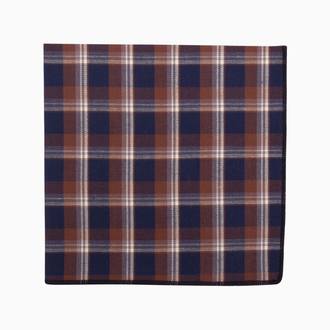 Cette pochette présente un motif à carreaux avec une harmonie de couleurs comprenant le bleu marine, le marron terreux et le blanc. Les carrés marron sont entrecoupés par des bandes blanches fines, qui se croisent également avec des bandes bleu marine pour créer un motif de damier. Ces bandes blanches sont soulignées par de légères ombres de bleu, ajoutant de la profondeur au design. Le fond bleu marine sert de base solide au motif, tandis que le marron apporte une touche chaleureuse. Dans l'ensemble, la pochette évoque une sensation à la fois classique et contemporaine, parfaite pour une variété d'occasions.