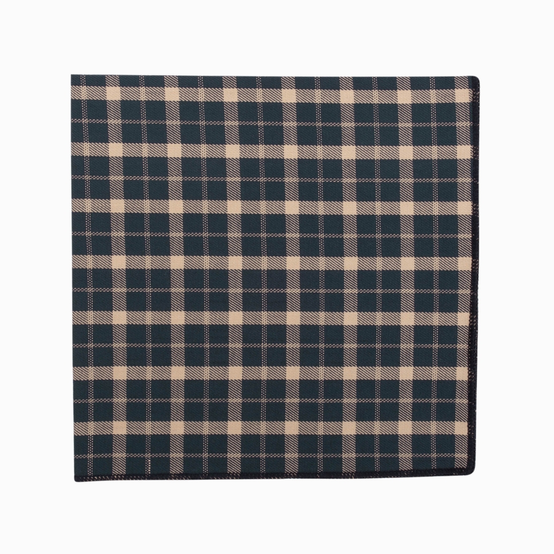 Cette pochette affiche un motif à carreaux élégant avec une combinaison de nuances bleu marine et beige. Les carrés bleu marine sont bordés par des lignes fines et régulières de couleur beige, formant un damier bien défini. Le fond bleu marine est profond et riche, ce qui contraste agréablement avec les tons plus clairs de beige. La finition du bord semble soignée, ce qui renforce la qualité générale de la pochette. Avec son motif intemporel, cette pochette pourrait être un accessoire polyvalent pour diverses tenues.
