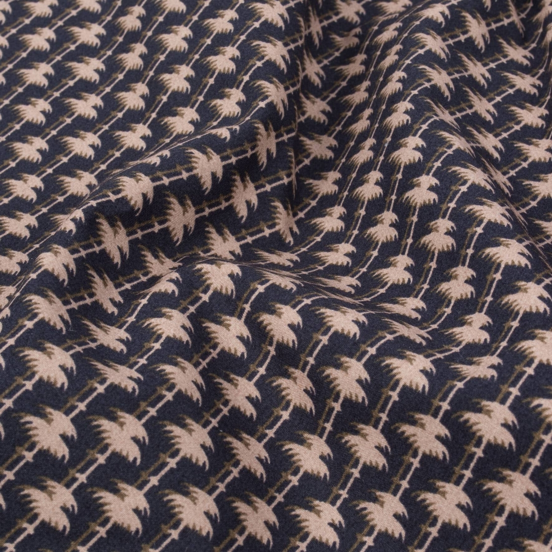Ce short de pyjama allie confort et style avec son imprimé Palm beige Liberty, évoquant la sérénité des oasis tropicales. Les palmiers d'un beige doux contrastent avec le fond bleu marine, apportant une touche d'élégance décontractée. Le ruban en soie bleu marine pour serrer la taille élastique assure un ajustement parfait et ajoute une note raffinée à ce vêtement de nuit essentiel.